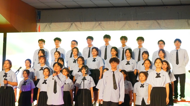 最后,晚会在《明天会更好》大合唱的歌声中圆满结束,所有嘉宾、领导和老师与演员们合影留念。